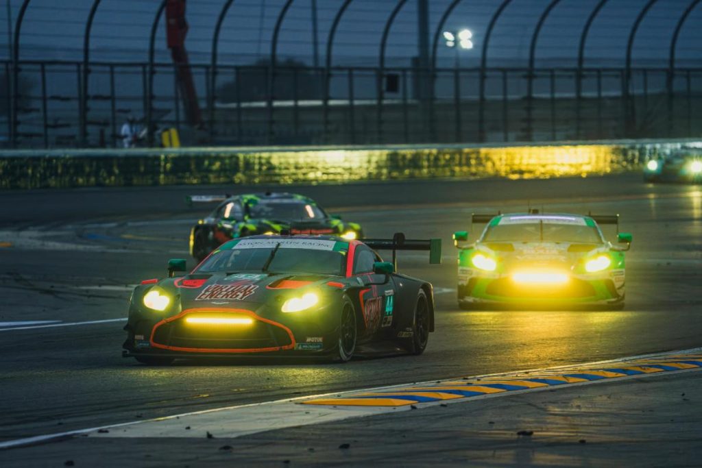 With Nicki back in the car to the finish, it was a hard-fought restart that would dramatically change the tone of the race. Taking the green flag in fifth, an unreal and impossible-to-describe series of passes through the first six turns would vault the team to first, and with it a strong feeling that victory was a real possibility. As the race evolved to the final 90 minutes, the car would drop back to second briefly due to offsetting strategies with another Aston Martin, but ultimately the strategy and pace of the No. 44 would prevail, and the team continued to lead after the final round of pit stops.