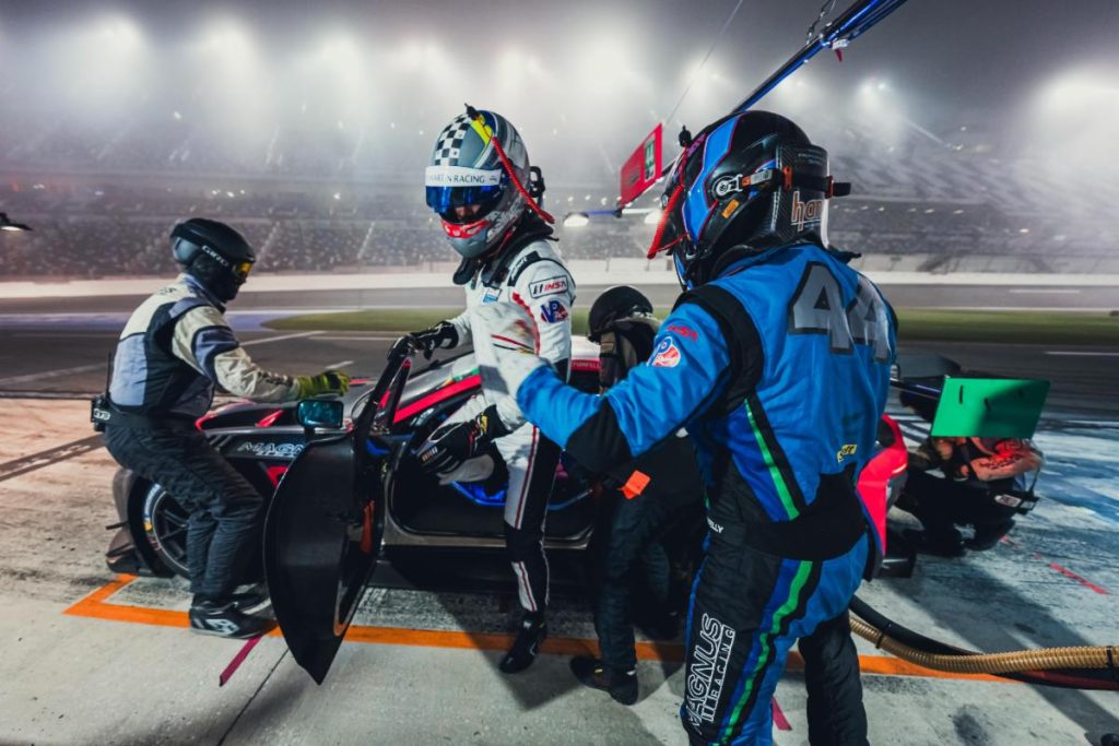 As the night progressed, however, the coastal community of Daytona Beach would be engulfed in a long period of dense fog, forcing the field to run under caution for over six hours. Running through the night and into the morning at safety car speeds, the team shifted from enduring through the night to focusing on performance for the next day, knowing that when the green flag fell it would become a seven-hour sprint race.